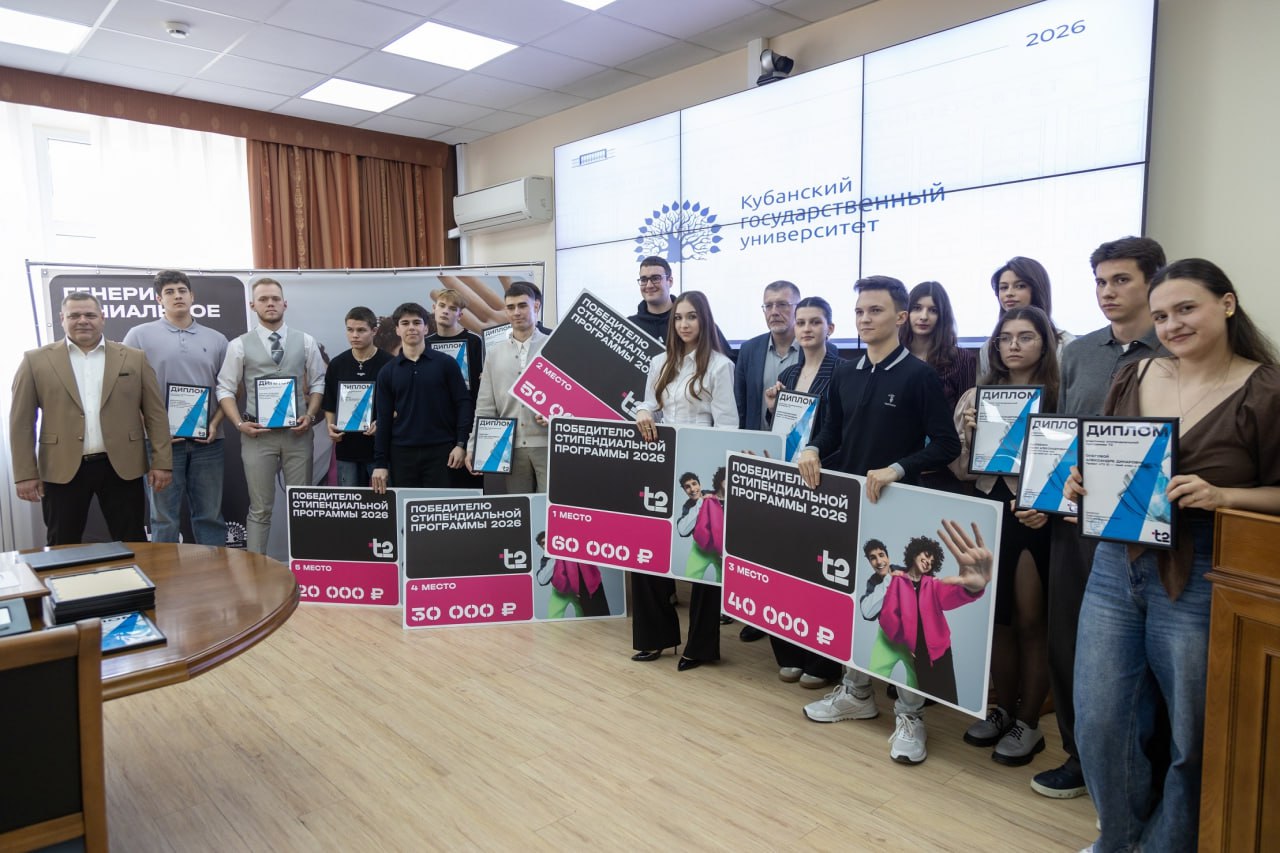 T2, российский оператор мобильной связи, и Кубанский государственный университет подвели итоги специального стипендиального проекта для учащихся вуза. Из более чем 80 заявок были выбраны пять лучших работ, авторы которых разделят между собой призовой фонд.