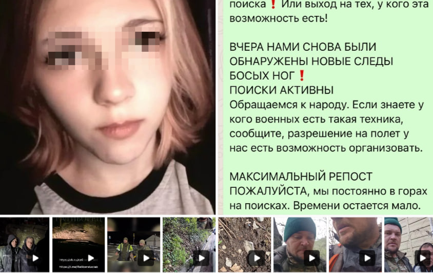«Очень сложно, не хватает людей для масштабных поисков, не достучаться до органов. Собак-поисковиков выпрашивают, теряется время. Но никто не сдаётся», — пишет одна из участниц поисков Анжела Н.