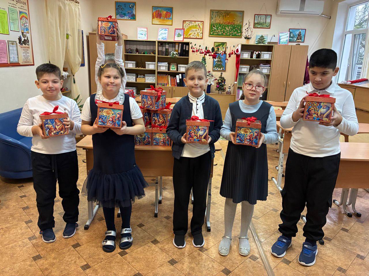 Депутат передал детям сладкие подарки. Кроме того, он поблагодарил коллектив школы за непростой, но очень нужный труд.