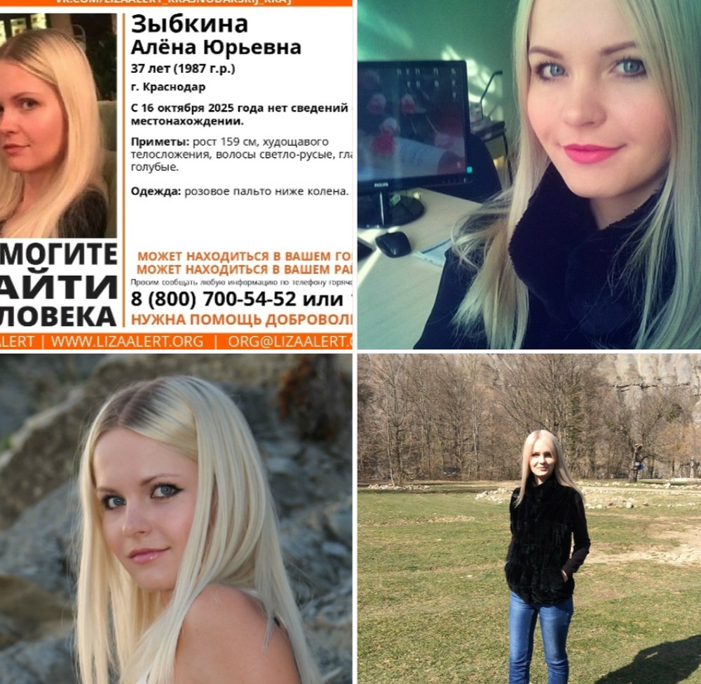 С 16 октября 2025 года не выходит на связь и разыскивается 37-летняя Алена Зыбкина (дата рождения уточняется: 05.12.1987).