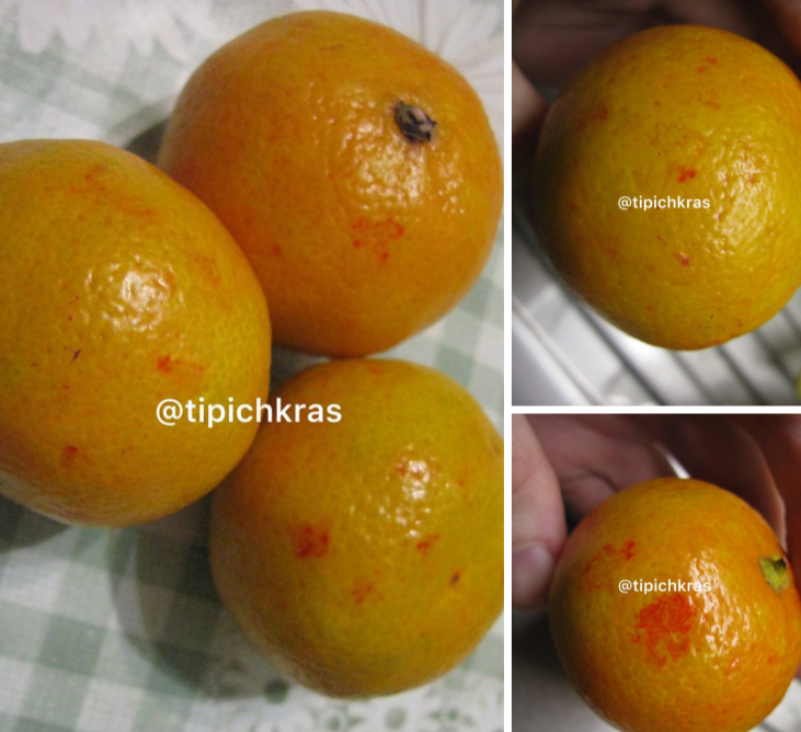 «На данный момент нахожусь в другом городе, купила мандарины — и они тоже оказались крашеными».
