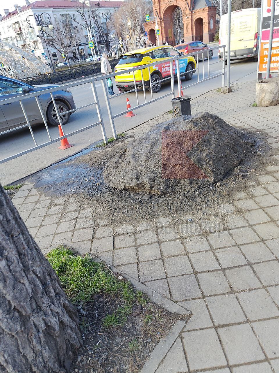 Единственным напоминанием о недавних снегопадах в Краснодаре осталась одинокая «могучая» кучка подтаявшего снега, обнаруженная прямо на тротуаре в центре города. Фотография этого «наследия зимы» была опубликована в воскресенье, 8 февраля, в популярном телеграм-канале «Типичный Краснодар».