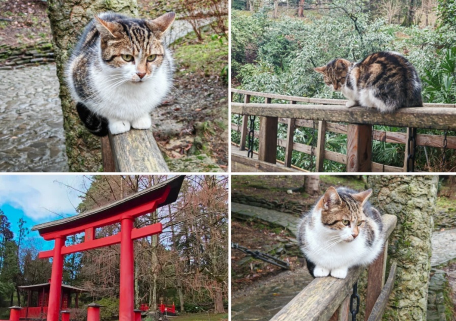 Коты здесь вписаны в ландшафт как его органичная часть: они дремлют на прогретых солнцем перилах, растворяются в зелени экзотических растений и занимаются своим главным делом — созерцанием. В то время как посетители суетятся с фотокамерами, пытаясь запечатлеть мгновение, хвостатые стражи смотрят сквозь них с философским спокойствием, будто наблюдая лёгкий туман.