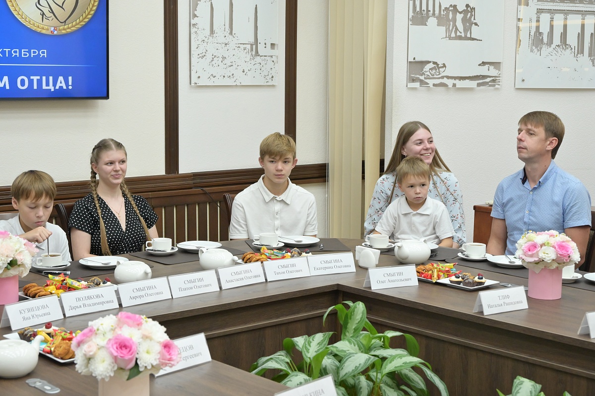 Андрей Прошунин подчеркнул, что крепкая многодетная семья является основой сильного государства. В 2024 году, объявленном Годом семьи, городская администрация учредила знак «Отцовская доблесть», продолжив тем самым традицию признания родительского вклада. Система поддержки семей с детьми остается ключевым направлением социальной политики муниципалитета. Для более чем 8800 многодетных семей Сочи, помимо федеральных и региональных льгот, действует комплекс местных мер. Он включает ежемесячные выплаты на детей, новогодние подарки, льготный проезд и парковку, скидки на обучение в учреждениях культуры, а также бесплатные билеты на концерты и мероприятия. Особое внимание уделяется семьям военнослужащих, которые получают в городе всю необходимую помощь.