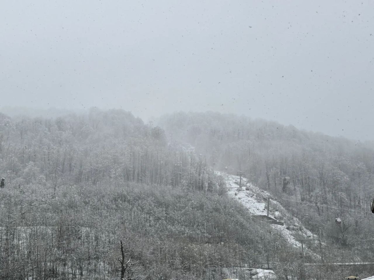На курорте «Красная Поляна» за ночь выпала обильная норма снега. Непогода продолжается даже на нижних высотах, однако сезон катания продлится ещё месяц, и для туристов действуют специальные тарифы.