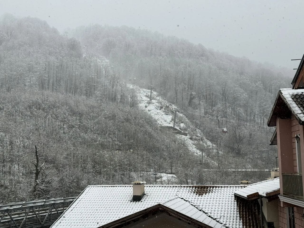В районе Курорта Красная Поляна зафиксированы сильные снегопады. С прошлой ночи там выпало более 30 сантиметров осадков, и к восьми утра стихия не утихает даже на самых низких склонах на уровне 540 метров. На высоте 1460 метров суточный прирост покрова составил плюс 33 сантиметра, а выше двух тысяч метров — плюс 21 сантиметр.