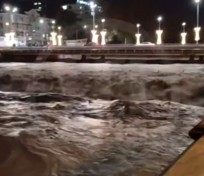 Река Сочи вплотную приблизилась к выходу из берегов после мощных ливней, обрушившихся на курорт. Как сообщает телеграм-канал «ЧП Сочи», на опубликованных кадрах видно, что водной артерии города осталось совсем немного до полного разлива.