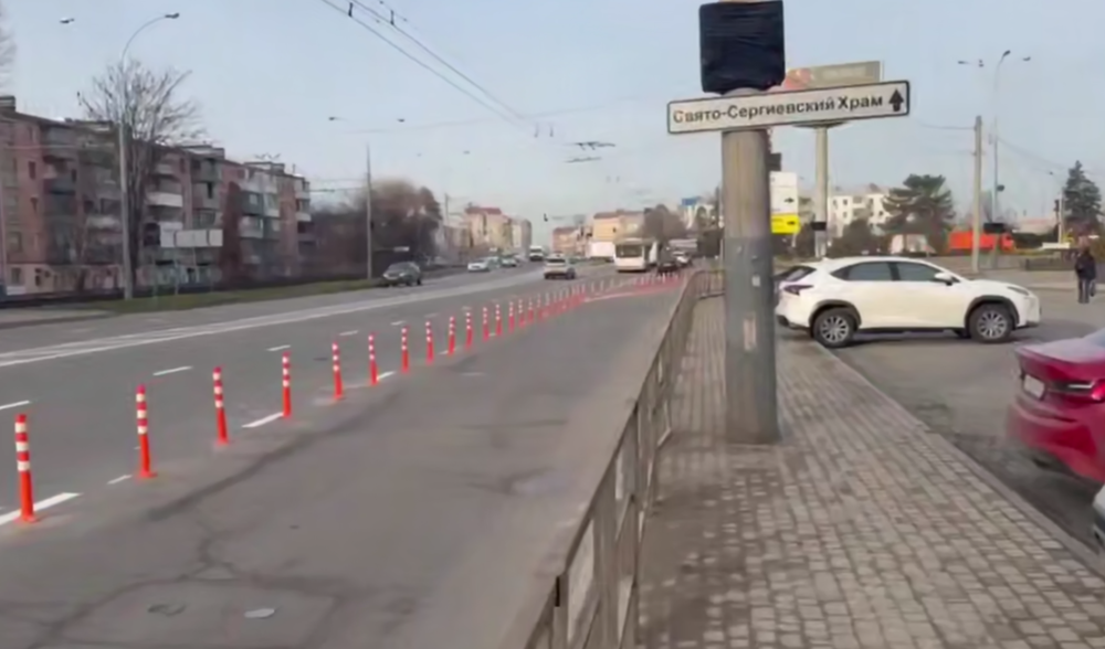 Главное изменение коснулось улицы Офицерской. Теперь крайняя правая полоса, с которой осуществляется поворот в направлении Ростовского шоссе, физически обособлена от основного потока машин с помощью специальных ограничительных столбов. Такое решение призвано упорядочить движение и исключить хаотичное перестроение в последний момент.