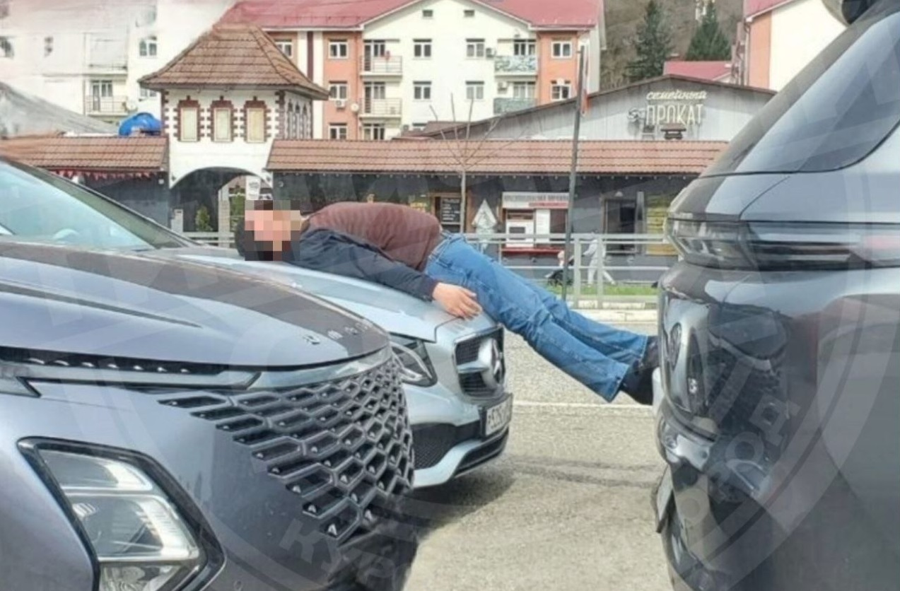 По словам очевидцев, инцидент произошел в Красной Поляне. Мужчина вышел из увеселительного заведения. Он упал на капот первого попавшегося в поле зрения автомобиля. Далее мужчина оперся ногами на другую машину и уснул.