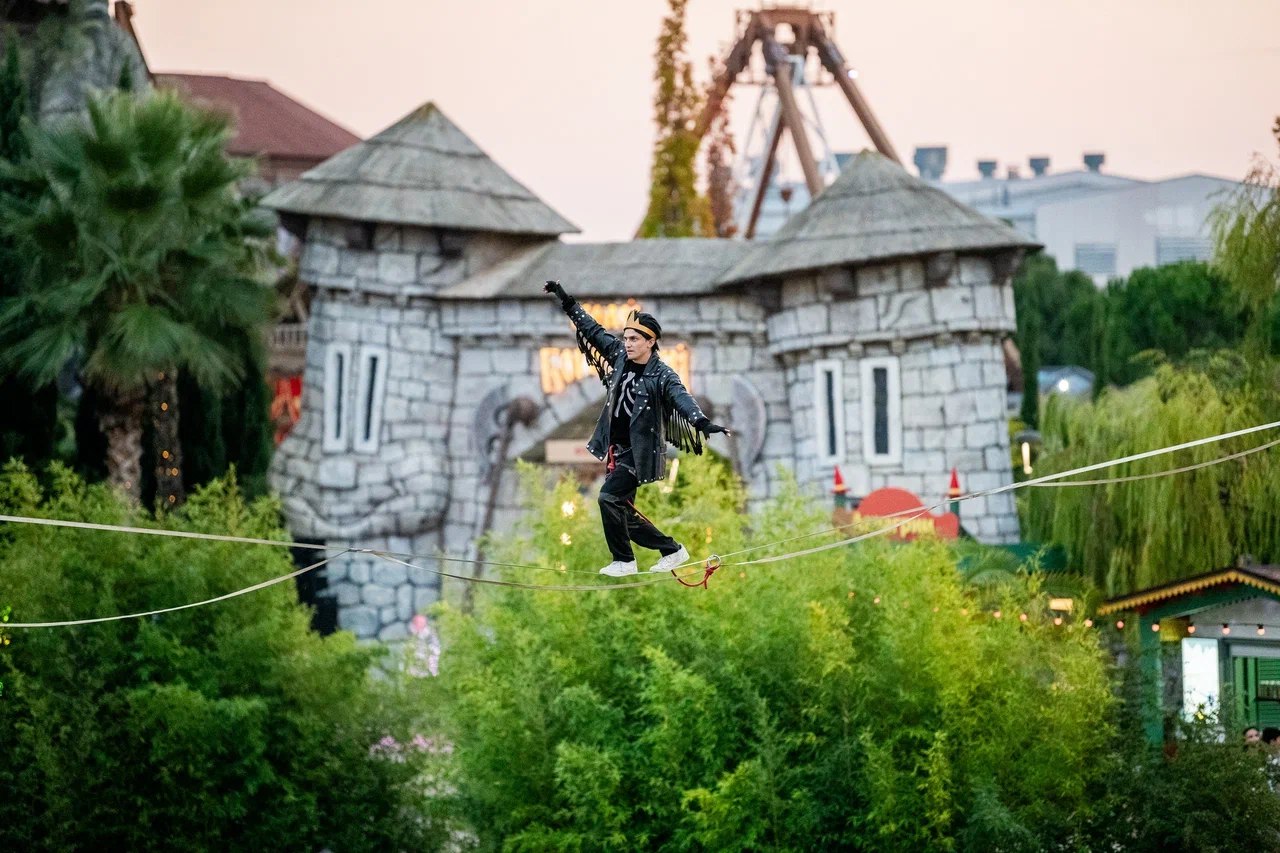Экстремальный номер Кощея. Герой исполняет трюк на высоте 6 метров, пересекает озеро по натянутой ленте. Посетители отмечают, что шоу впечатляет и захватывает дух. Кощей заявил, что готов на любые трюки ради именинницы. Время начала: 17.30.