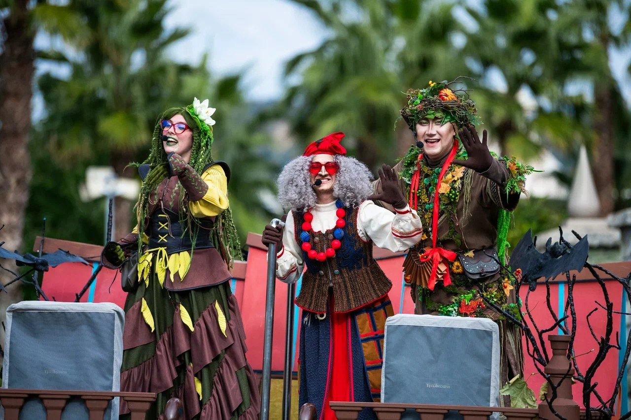 Дополнительно в программе: кукольное представление «Тайна маленьких троллей», развлекательные программы в резиденции Бабы Яги, музыкальные выступления «Трубачи» и «Мистический Brass Band», шоу мыльных пузырей «Чудо-формула», конкурс на лучший костюм, праздничное шоу дельфинов.