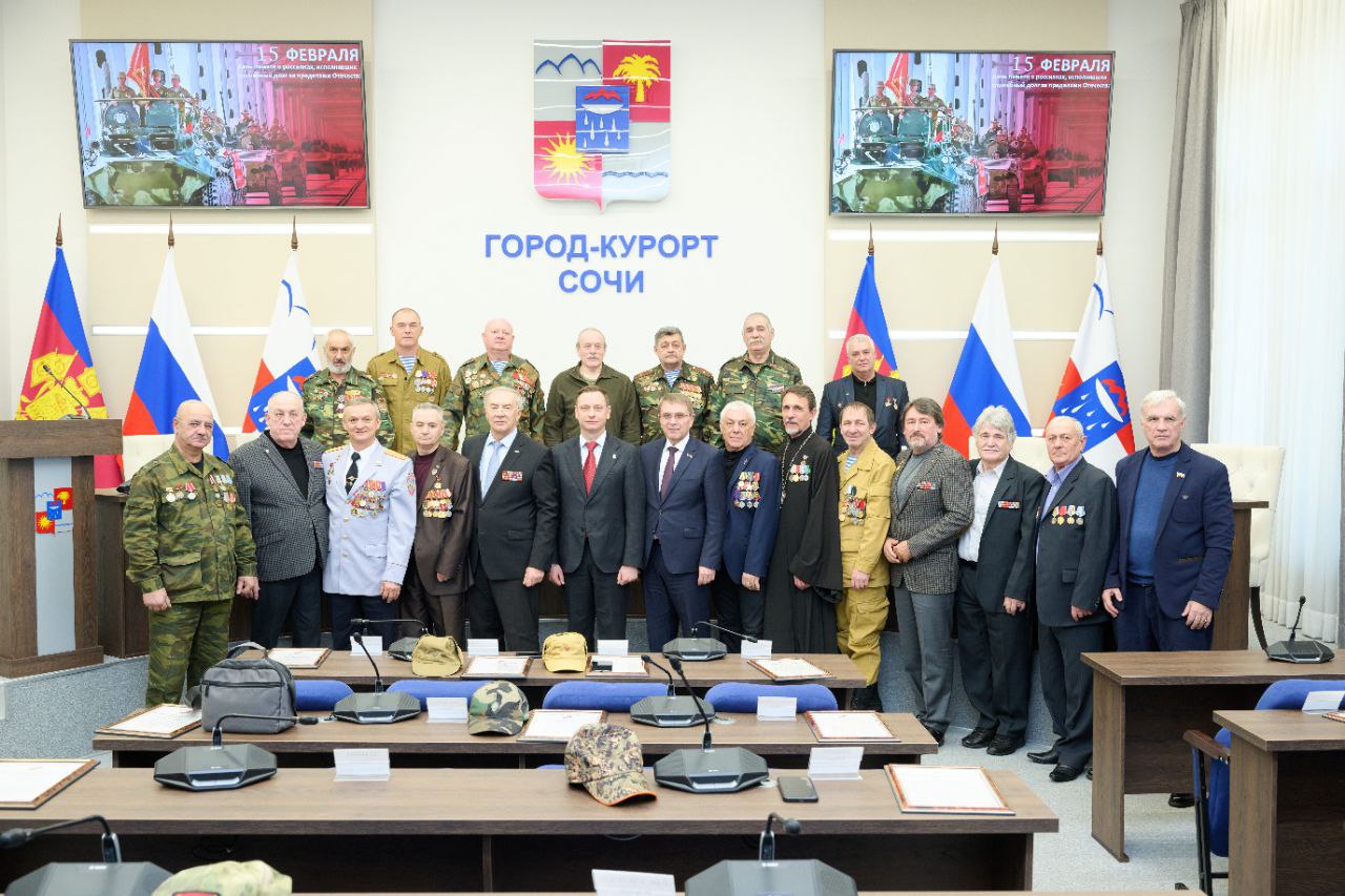 В рамках мероприятия состоялось вручение наград. Благодарственные письма главы города и Городского собрания Сочи получили активисты и руководство местного отделения «Общероссийского Союза ветеранов Афганистана и специальных военных операций». Их отметили за весомый вклад в патриотическое воспитание подрастающего поколения, подготовку молодежи к военной службе, а также за активное участие в организации помощи ветеранам боевых действий, инвалидам и их семьям.