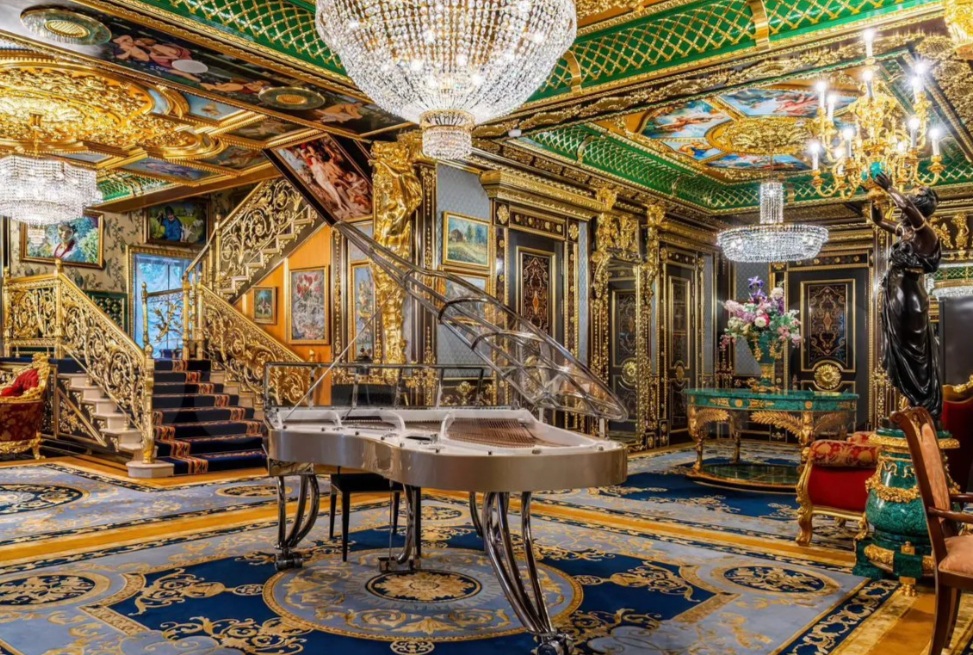 Особенностью объекта являются его эксклюзивные интерьеры, включающие элементы декора с сусальным золотом, лепнину, отделку натуральным камнем — мрамором, травертином и ониксом. В здании присутствует подогреваемый бассейн с видом на парк, хамам с мраморными лежаками и баня, изготовленная из карельской сосны. Поставляется мебель итальянских брендов.