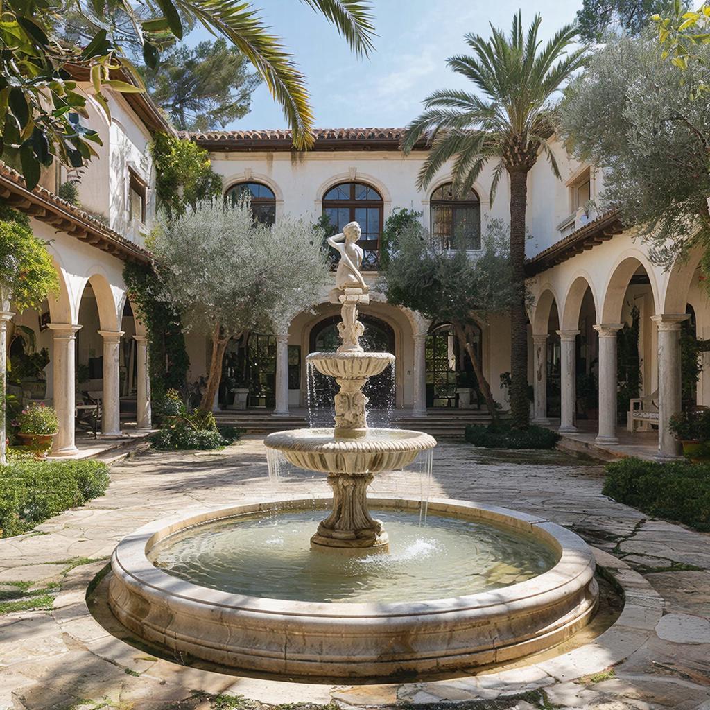 К основному зданию прилагаются гостевой дом площадью 140 кв. м и дом для персонала в 100 кв. м. На благоустроенной территории находятся оливковые деревья, плодовый сад, дизайнерский фонтан из мрамора, зона барбекю и отдельная веранда с кухней. Для отдыха предусмотрена баня или сауна, а для автомобиля — гараж.