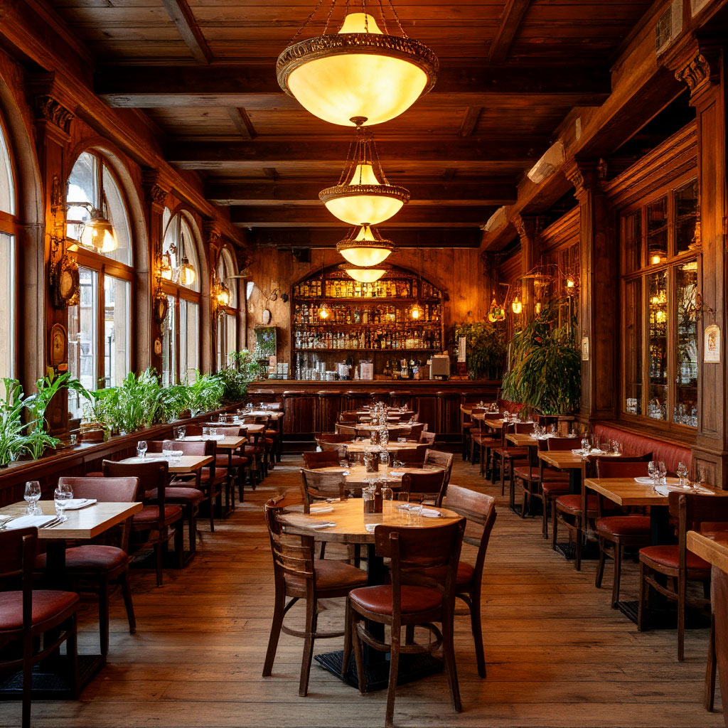 Площадь арендуемого помещения составляет 500 кв. м, в заведении оборудовано 100 посадочных мест. Формат обслуживания — с официантами. Кухня предлагает смешанное меню, включающее европейские, русские, азиатские, итальянские, греческие и мексиканские блюда. Доступна доставка через агрегаторы.