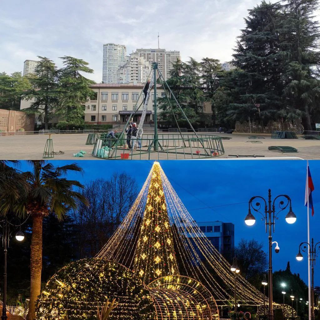 Новогоднее преображение охватит весь город: в четырех районах курорта создадут тематические площадки с фотозонами, арт-объектами и тысячами огней. Планируется, что всего в Сочи появится около пятнадцати празднично украшенных елей. Многие из них уже радуют жителей и гостей. Увидеть их можно в парке «Ривьера», на Мацестинской набережной, в адлерском парке на улице Ромашек, на улице Кирова в Адлере, у Центра национальных культур в Лазаревском, у ДК «Восход», у дома культуры в ауле Тхагапш, а также на улице Малышева и набережной реки Псезуапсе.