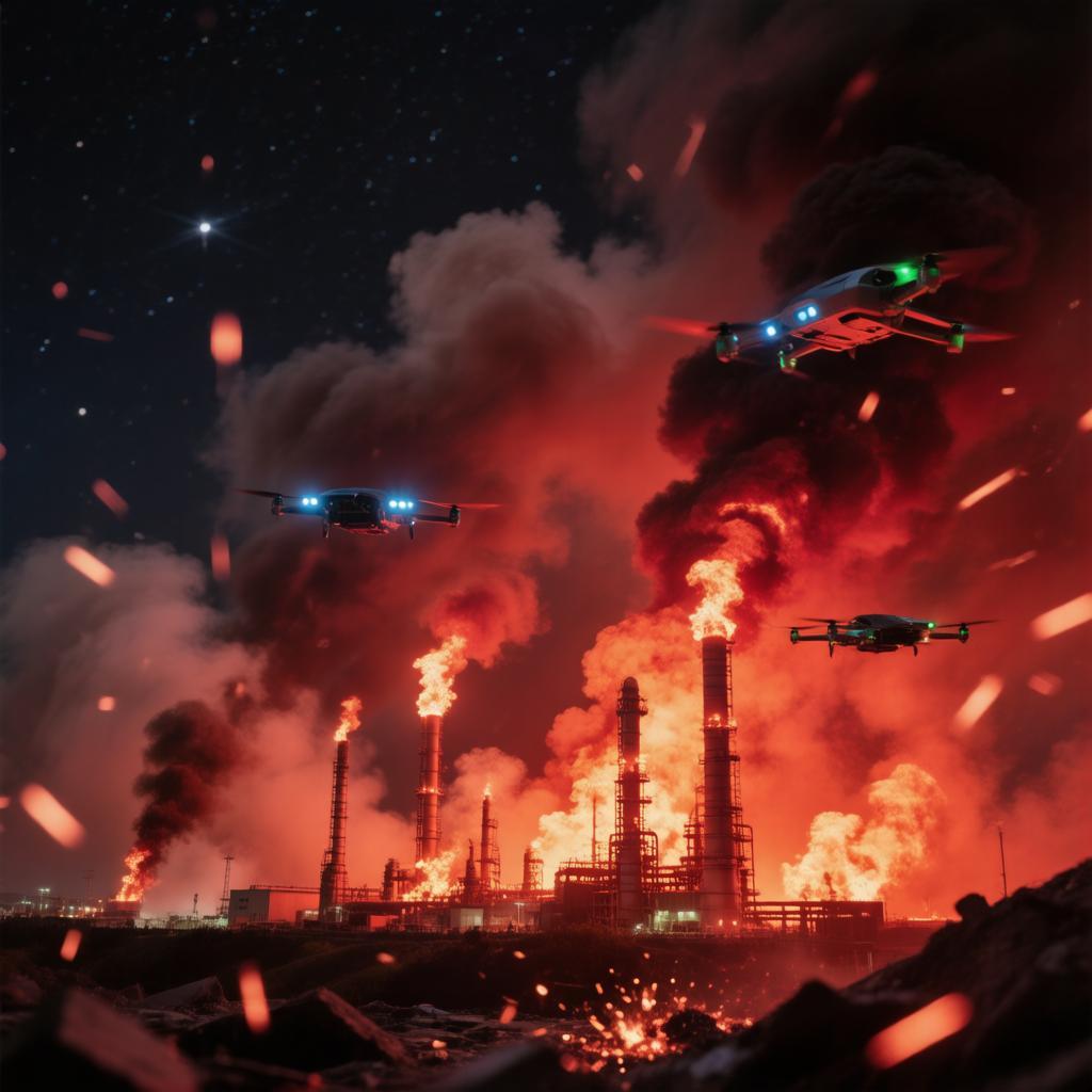 Наиболее тяжёлые последствия атаки зафиксировали в Туапсе. Очевидцы рассказывали, что за два часа слышали более десятка громких взрывов, видели работу ПВО и яркие вспышки в небе. Беспилотники заходили группами со стороны Чёрного моря на предельно низкой высоте. В одном из районов на месте падения обломков началось возгорание. Как позже официально подтвердил оперштаб в 5:23, пожар произошёл на территории нефтеперерабатывающего завода. К счастью, пострадавших в результате инцидента не оказалось. Тушением занимались 122 человека и 39 единиц техники, в том числе силы ГУ МЧС России по Краснодарскому краю.
