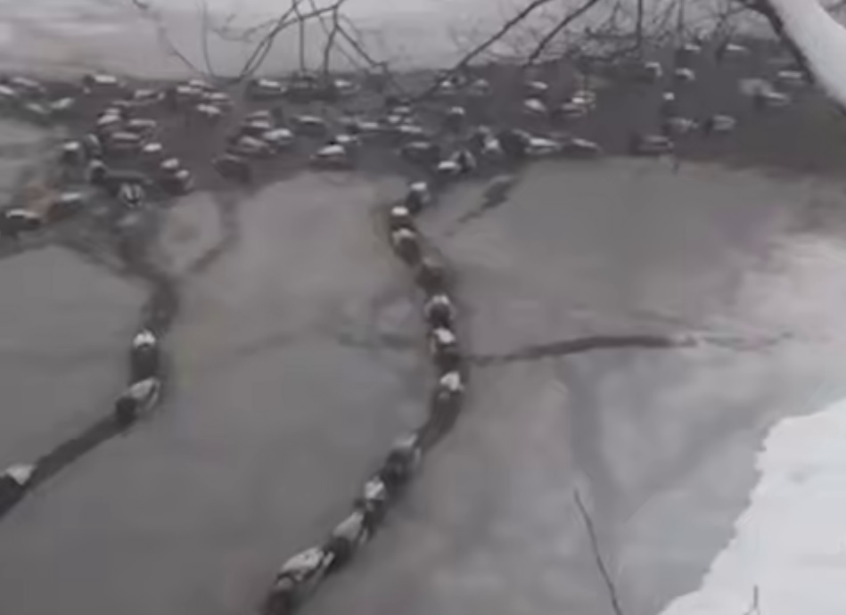 Случившееся сняли на видео. На кадрах видно, поток пернатых организованно передвигается по воде, по большей части покрывшейся льдом.