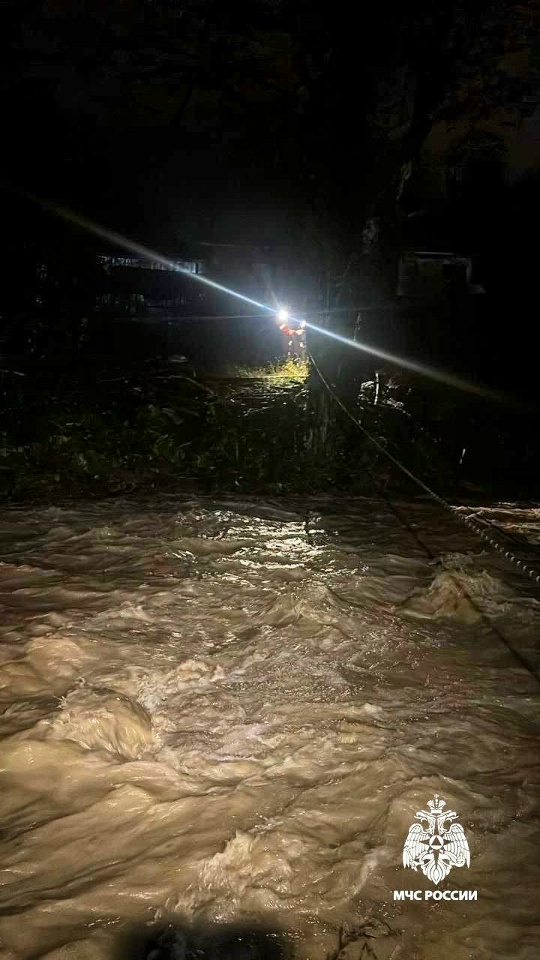 Курортный вечер в Хостинском районе Сочи едва не закончился трагедией для местного жителя. Из-за сильных ливней уровень воды в русле реки Цанык стремительно поднялся, превратив обычно более спокойный поток в бурный. Мужчина, пытавшийся преодолеть реку вброд на своем автомобиле, потерял контроль над ситуацией — мощное течение начало сносить машину.