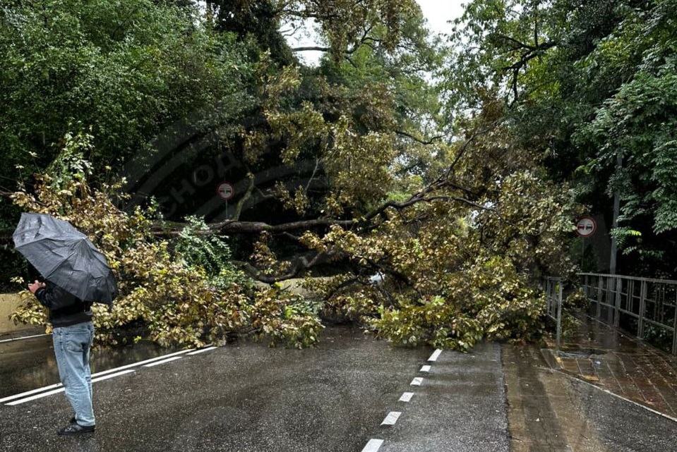 Во вторник, 14 октября, на федеральную трассу в Сочи упало большое дерево. Об этом сообщает Telegram-канал «Типичный Сочи».