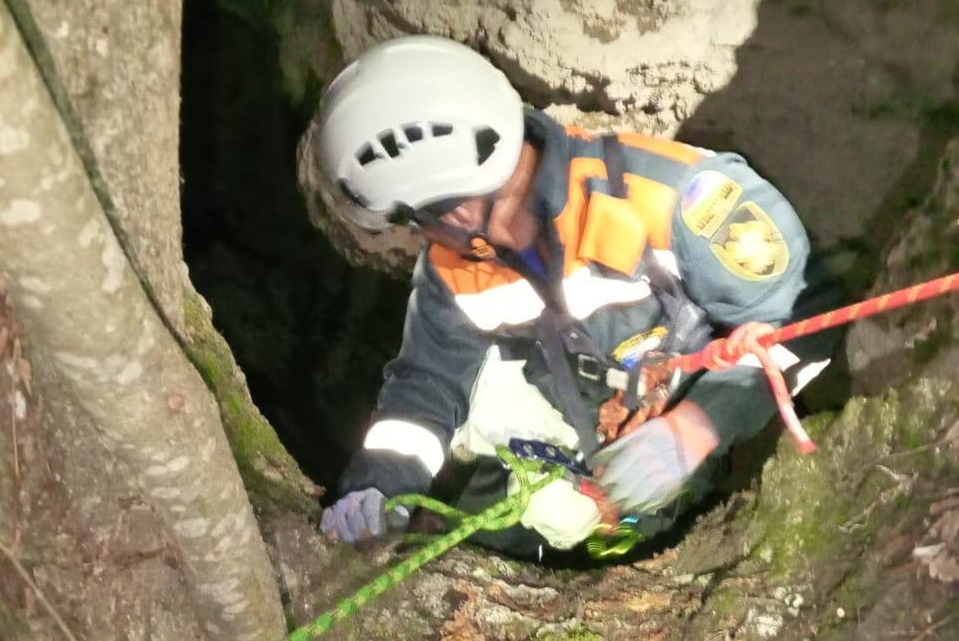 Инцидент произошел в районе села Горное. Собака породы мини-шнауцер упала в расщелину глубиной около 10 метров. Хозяйка животного пыталась самостоятельно спасти питомца. Однако у нее ничего не вышло. Тогда женщина обратилась за помощью.