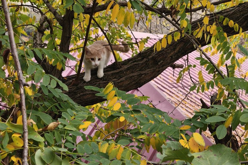 По его словам, котенок сбежал из дома на улицу. Одеров рассказал, что от увиденного животное залезло на дерево. Там питомец впал в ступор.