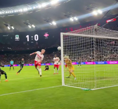 С первых минут инициатива полностью принадлежала команде Мурада Мусаева. Агрессивный прессинг и четкий контроль мяча позволили «Краснодару» создать ряд моментов уже в стартовой половине тайма. На 12-й минуте Джон Кордоба поразил ворота после подачи Лукаса Оласы, но гол был отменен из-за положения «вне игры». Однако уже на 18-й минуте мощный и точный удар Александра Черникова оставил без шансов голкипера «Спартака» Александра Максименко. Для полузащитника этот мяч стал дебютным в текущем розыгрыше чемпионата.